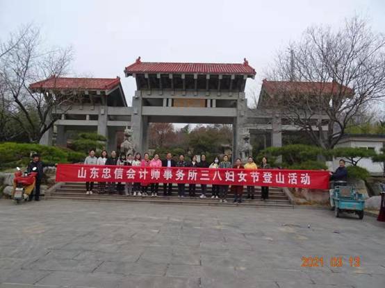 在這個(gè)陽光明媚,春意盎然的日子里,山東忠信會計(jì)師事務(wù)所有限公司迎接建黨一百周年、迎來建所二十周年、國際三八婦女節(jié)。在這個(gè)特殊的日子里,山東忠信會計(jì)師事務(wù)所于2021年3月13日上午組織登山活動,我所47名員工參加此次活動。大力開展全員健身活動,豐富和活躍員工的文化體育生活,進(jìn)一步增強(qiáng)公司凝聚力、向心力。促進(jìn)企業(yè)和諧向上發(fā)展,展現(xiàn)我所員工良好精神風(fēng)貌的一次盛大活動。旨在豐富員工的業(yè)余文化生活,進(jìn)一步增強(qiáng)大家的健身意識。