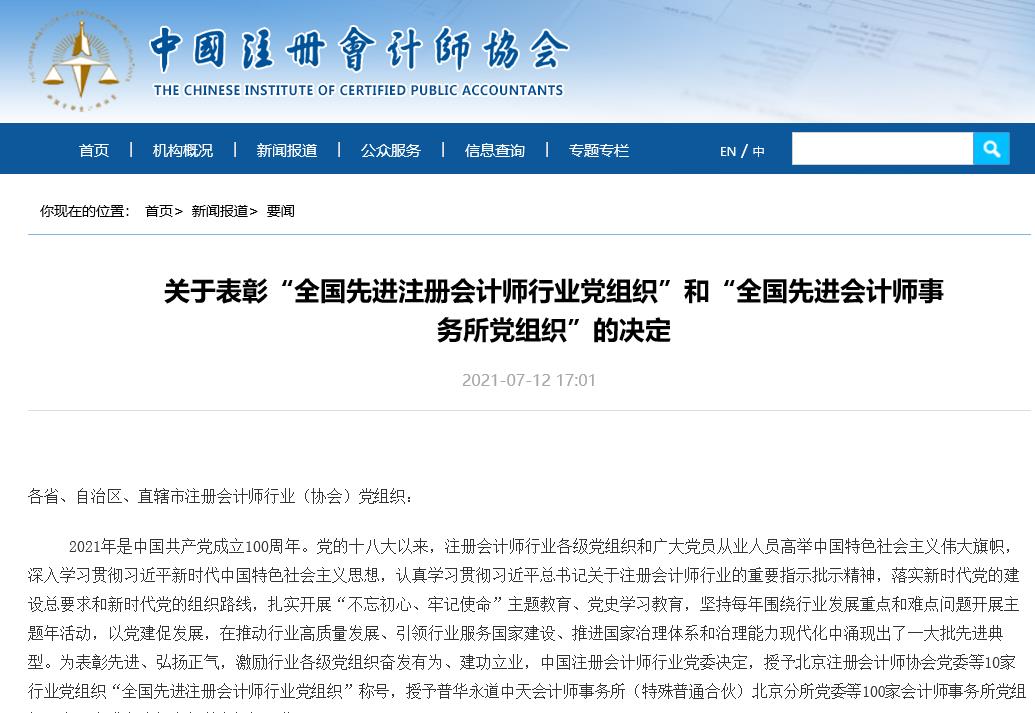 2021年7月12日,中國注冊會計師協(xié)會網(wǎng)站發(fā)布《關于表彰“全國先進注冊會計師行業(yè)黨組織”和“全國先進會計師事務所黨組織”的決定》,山東忠信會計師事務所有限公司黨支部獲得“全國先進會計師事務所黨組織”榮譽稱號。擬于2021年7月22日(周四)上午,在北京國家會計學院舉辦頒獎典禮。 山東忠信會計師事務所有限公司黨支部在中央、省、市注冊會計師行業(yè)黨委的正確領導下,深入學習貫徹習總書記一系類重要講話精神,扎實開展“不忘初心 牢記使命”主題教育、黨史學習教育。以黨建促發(fā)展,推動審計高質量發(fā)展。 此次“全國先進會計師事務所黨組織”榮譽稱號表彰是對我們山東忠信會計師事務所有限公司黨支部黨建工作的充分肯定,在以后的工作中,我們將積極有為,繼續(xù)發(fā)揮先進示范作用,做到以史為鑒,砥礪前行;以史為鑒,開創(chuàng)未來;以史為鑒,以史明今;以史為鑒,永葆初心。 中國注冊會計師協(xié)會-要聞 http://www.cicpa.org.cn/xxfb/news/202107/t20210712_62680.html 附截圖: