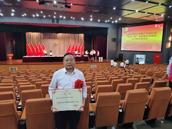 2021年7月22日下午,注冊會(huì)計(jì)師資產(chǎn)評估行業(yè)“兩先一優(yōu)”表彰暨黨史學(xué)習(xí)教育推進(jìn)會(huì)在北京國家會(huì)計(jì)學(xué)院隆重召開。黨支部書記褚慶騫同志代表山東忠信會(huì)計(jì)師事務(wù)所有限公司黨支部,參加本次會(huì)議領(lǐng)獎(jiǎng),獲得全國先進(jìn)榮譽(yù)。