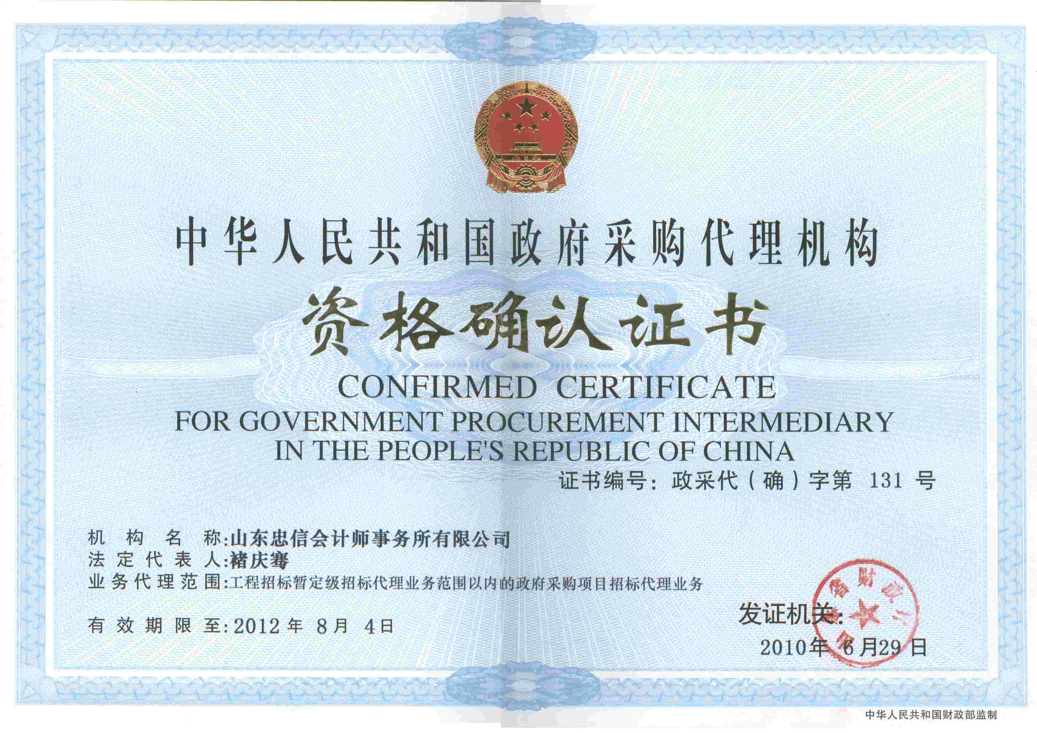 位置:山東忠信會計師事務(wù)所有限公司 > 資質(zhì)榮譽(yù) > 采購代理機(jī)構(gòu)資格確認(rèn)書